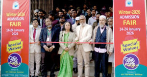 উচ্চশিক্ষার স্বপ্ন পূরণ সত্যি করার প্রয়াসে ইউনিভার্সিটি অব গ্লোবাল ভিলেজে (ইউজিভি) শুরু হয়েছে ১০ দিনব্যাপী বিশেষ অ্যাডমিশন ফেয়ার! বুধবার সকালে ইউজিভিতে এ বিশেষ এ্যাডমিশন ফেয়ারের উদ্বোধন করা হয়। ইউজিভি’র ২০২৬ সেশনের ছাত্র-ছাত্রীদের জন্য বিশেষ এ্যাডমিশন ফেয়ারে সম্ভাব্য শিক্ষার্থীদের ক্যাম্পাসের সত্যিকারের পরিবেশ সম্পর্কে ধারনা দেয়া, বিভিন্ন অনুষদের শিক্ষক এবং অন্যান্য আনুষাঙ্গিক বিষয়ে সার্বিক ধারনা দেয়া। এছাড়াও মেলা উপলক্ষে রয়েছে বিশেষ ছাড় ও উপহার। তাই সব মিলিয়ে প্রথম দিনেই দারুন সাড়া দেখা গেছে মেলায়, তৈরি হয়েছে এক প্রাণবন্ত এবং পরিবেশ। বুধবার সকালে ইউজিভি’র উপাচার্য অধ্যাপক ড. আবদুল বাকী ফিতা কেটে মেলার সূচনা করেন। ১০ দিন ব্যাপী এ মেলা আগামী ২৪ জানুয়ারী পর্যন্ত চলবে। এসময় উপাচার্য বলেন ‘বিশেষ এ্যাডমিশন ফেয়ার’ আমাদের ইউনিভার্সিটির দীর্ঘদিনের ঐতিহ্যের ধারাবাহিকতার ফসল। আমরা এই আয়োজনের মধ্যে দিয়ে আমাদের সম্ভাব্য শিক্ষার্থীদের তাদের ভবিষ্যৎ তৈরি করার পথ বেছে নিতে সাহায্য করবো। তাদের কৌতুহল, তাদের প্রশ্ন, এবং সত্যিকার অর্থে আমরা কেমন প্রতিষ্ঠান এসব যাচাই করে নেয়ার সবচেয়ে ভালো সুযোগ এটা। আমরা ছাত্র-ছাত্রী, তাদের অভিভাবকসহ সবাইকে আমন্ত্রণ জানাই এই সুযোগটি গ্রহণ করার জন্য, ইউজিভি’র তিনটি ক্যাম্পাসেই এ কার্যক্রম চলছে একযোগে। উপাচার্য আরও বলেন, মেলা চলাকালে শিক্ষক, কর্মকর্তা এবং সম্ভাব্য শিক্ষার্থী ও অভিভাবকদের সাথে কথা বলবেন, তাদের প্রশ্নের উত্তর দেবেন। দর্শনার্থীরা স্নাতক ও স্নাতকোত্তর প্রোগ্রাম, একাডেমিক সুবিধা, গবেষণা সুযোগ, সহশিক্ষা কার্যক্রম, ক্যাম্পাস সংস্কৃতি এবং ইউজিভি’র সামগ্রিক শিক্ষা পরিবেশ সম্পর্কে বিস্তারিত তথ্য সংগ্রহ করতে পারবে।